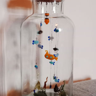 Curieuse des nombreuses techniques existantes autour du verre, je me suis intéressée au travail du verre au chalumeau, dans lequel j'épanouis ma créativité. Aujourd'hui, je vous propose mes premières perles et sculptures de verre venant de mon univers toujours onirique et curieux, mais aussi inspiré de la nature et des merveilles de ce monde.